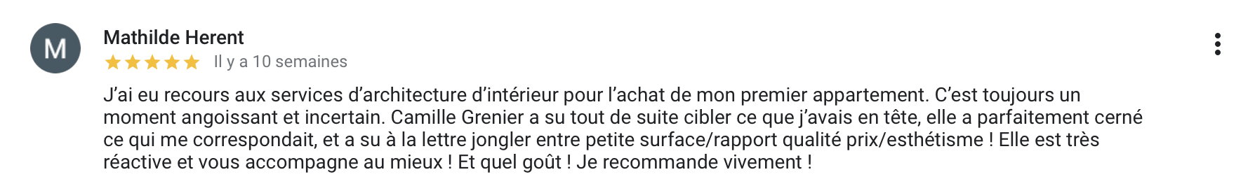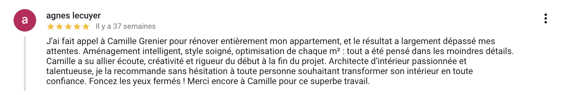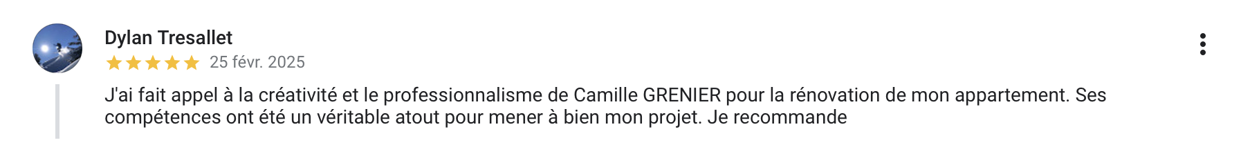 Camille Grenier est architecte d’intérieur spécialisée dans la rénovation d’appartements, maisons et chalets à Vincennes, Paris et La Plagne. Le studio conçoit et réalise des projets résidentiels et commerciaux sur mesure, en accompagnant particuliers et professionnels de la première idée jusqu’à la réalisation.