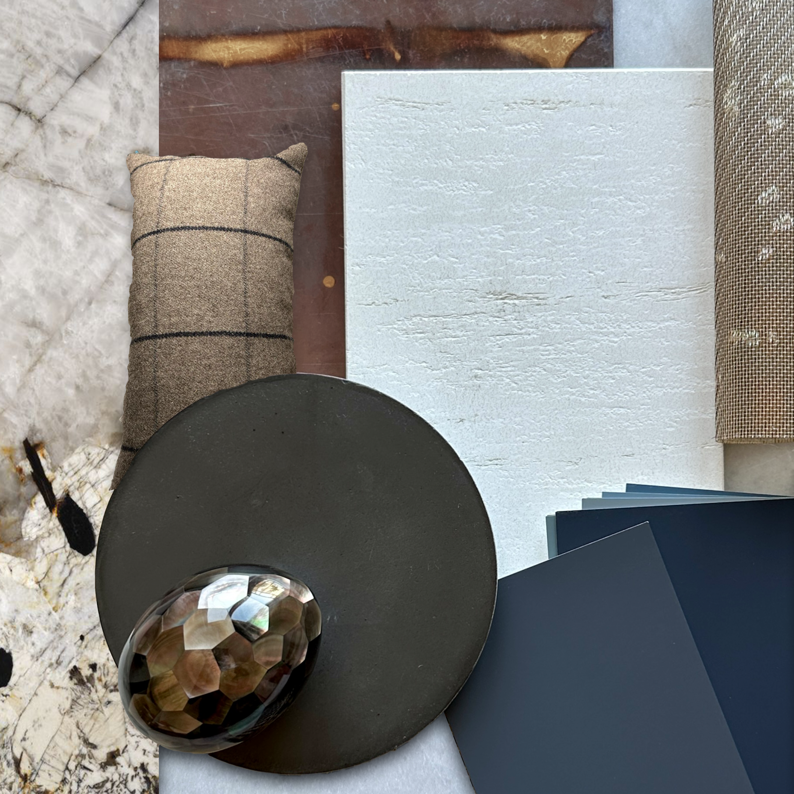 • Moodboard: Ambiance visuelle, palettes de couleurs, revêtements, équipements, mobilier & accessoires.