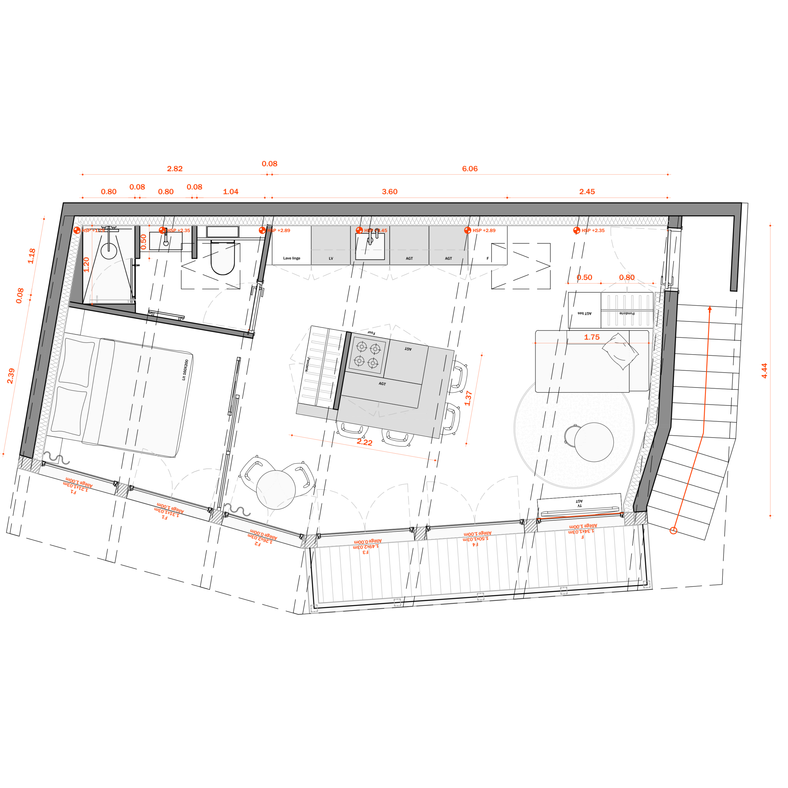 • Plans techniques d’exécution nécessaires à la réalisation des travaux à l’échelle 1/50e. (maçonnerie, plomberie, électricité, revêtements sols et murs, menuiseries)